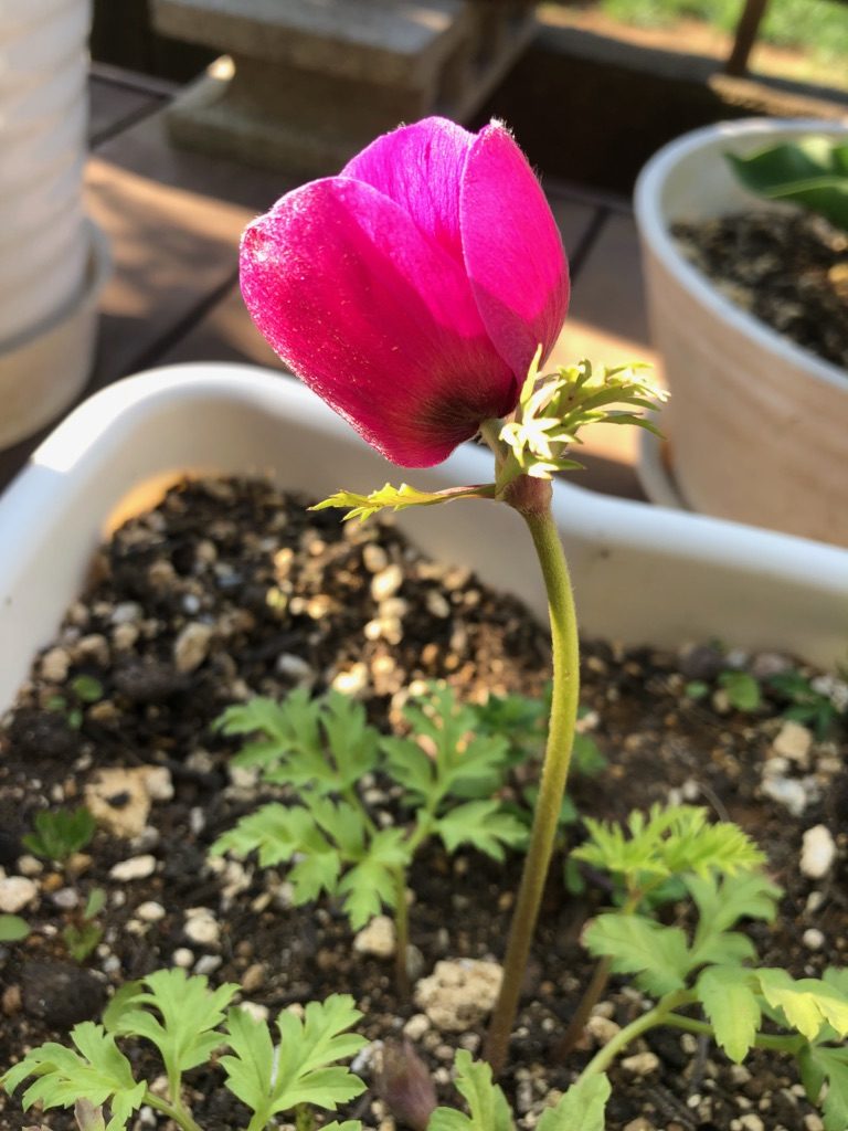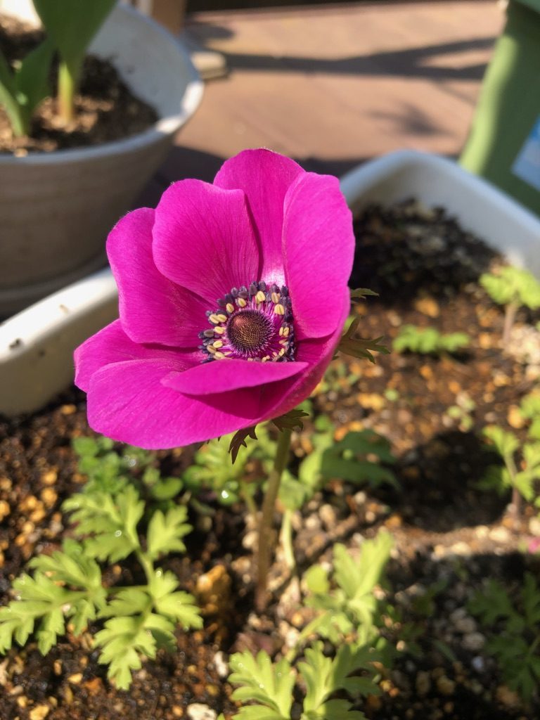 アネモネ 2020.04.18 花屋さんの店先にも色鮮やかなアネモネの花が並んでいます 語源はギリシャ語で風 開花時期が3月~5月 風の強い季節に咲くので 花散らしの別名もあるようです 地面から直接立ち上がって咲く けなげで力強い 可愛いい花