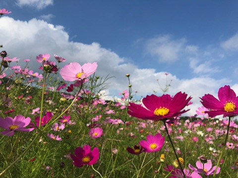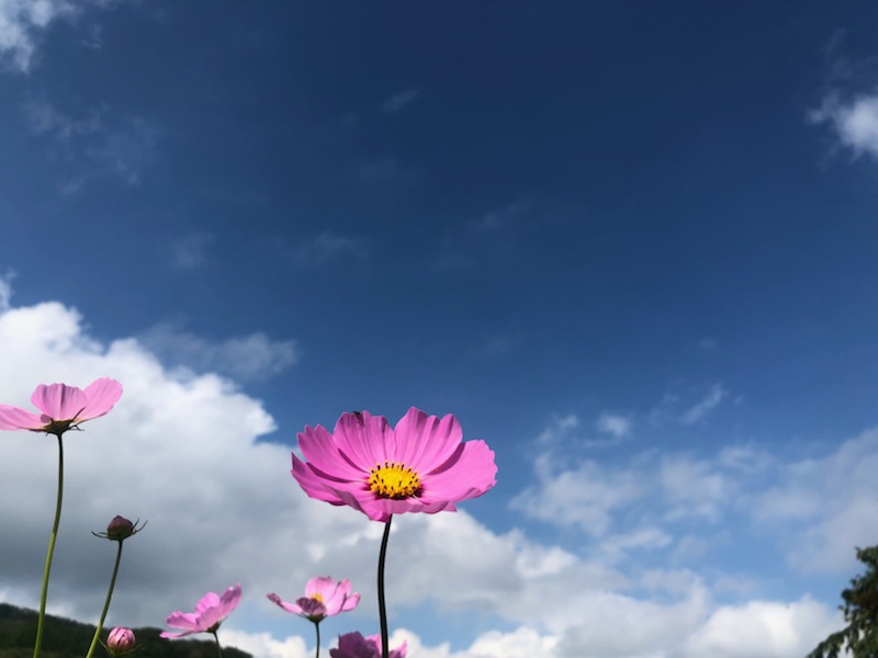 秋桜 2020.09.21 やっと訪れることができました 佐久高原 風にたわむれるコスモスを見ていると 秋にふさわしい気分になりました 自分に合った花に出会って 気持ちが落ち着つくのは それは花と人間の「気」が ピッタリ合っている証拠なんだそうです(^^♪