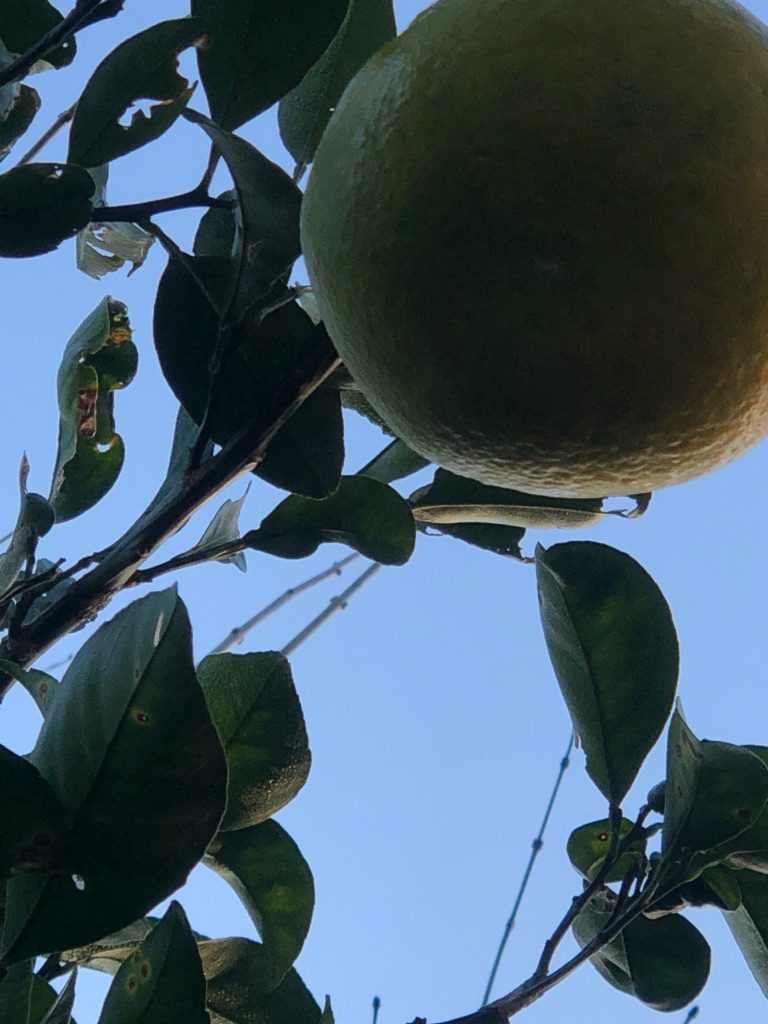産地直送 2020.12.07 今年もみかんが たわわに実りました (お隣のお家の庭に(*^^)v) もぎたてのビタミンC (^^♪ 毎年ありがとうございます 我が家の夏ミカンも黄色くなり始めました おすそ分けしますね(^^♪