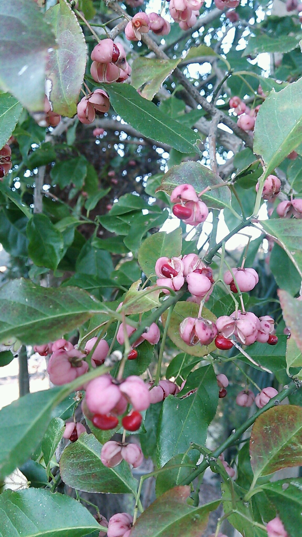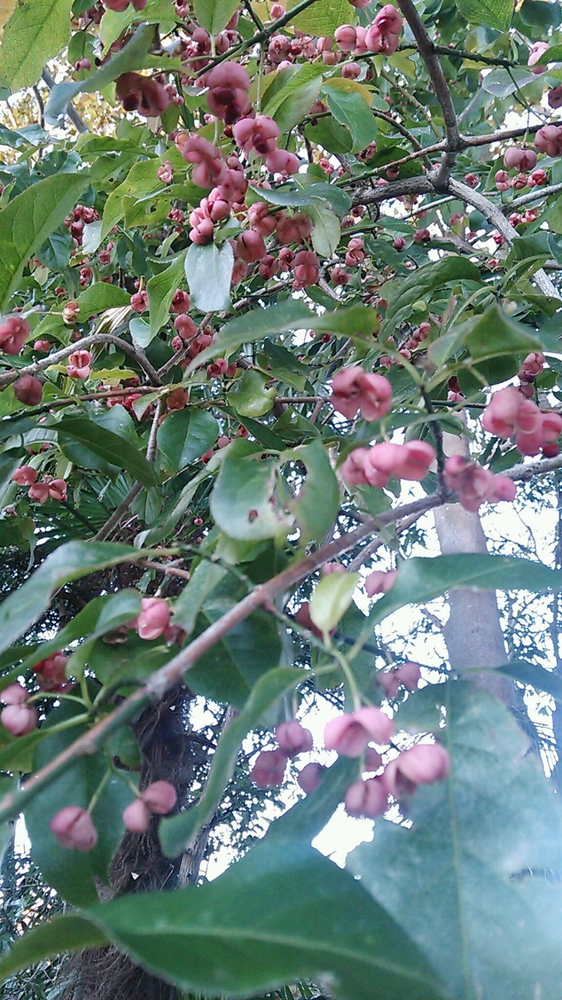 マユミ 2013.11.23 早朝のウォーキング、木立の中にピンクの樹木 ガサガサと藪を踏み分けて近づいてみたら、かわいらしい実のマユミ マユミは漢字で「真弓」と書き、むかし弓を作るのに用いられたとか 花言葉は 「あなたの魅力を心に刻む」 なんだかいい感じ マユミってオレンジ色と思ってた!