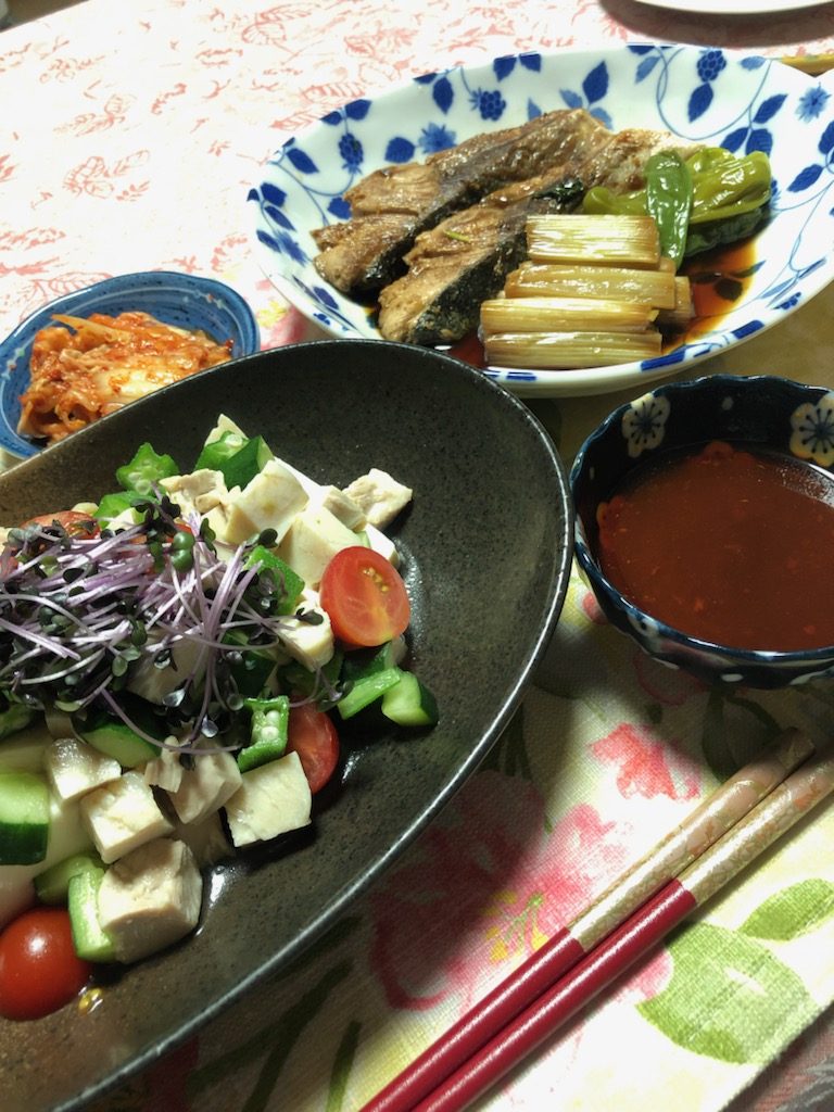 豆腐サラダのドレッシングはピリ辛です♪
