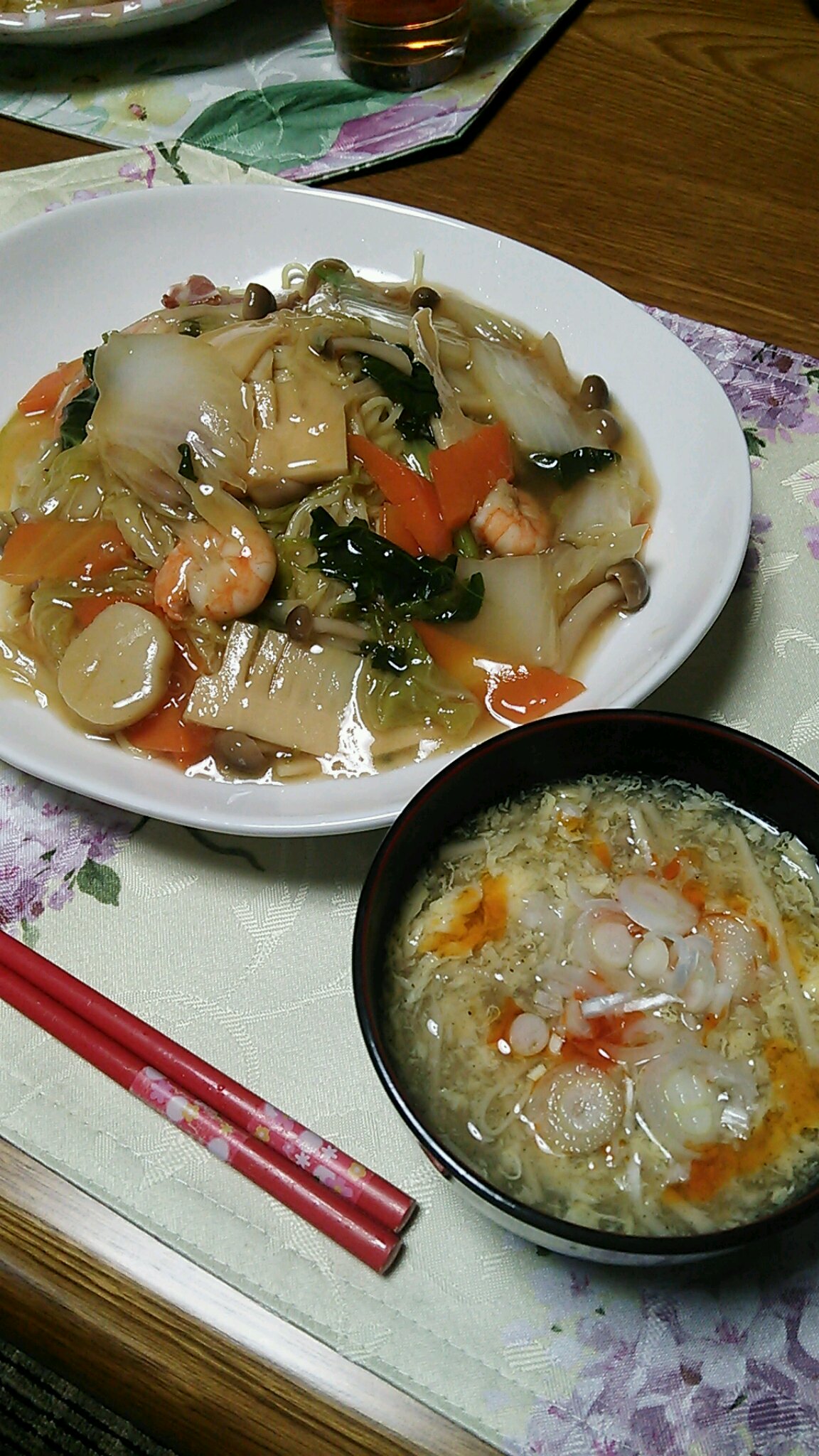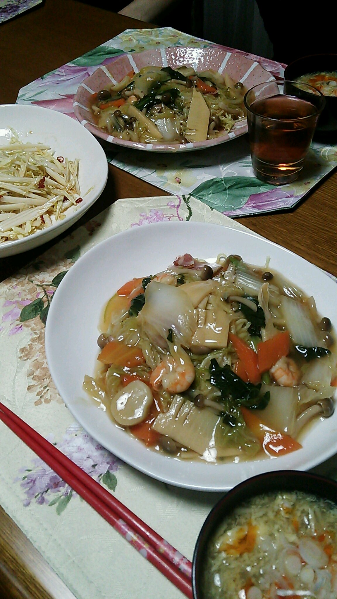 コンソメ味 2014.02.18 あんかけ焼きそば 我が家のシェフくん作 鶏ガラスープの代わりに コンソメ味のあんかけ スープは麺にかけたら 酸辣湯麺だね お酢と胡椒たっぷりです 寒い日の夕食(^^) いただきます(^^)(^^)