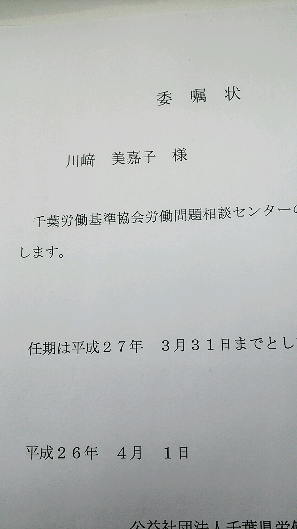 新年度 2014.04.01 新年度がスタートですね❀ 今年も引き続き、(公社)労基連会様からの 相談センターの相談員の委嘱をお受けしました 毎週火曜日、月4回の相談員です 経営者、従業員さん、双方からのたくさんのご相談をお受けしています 千葉労働基準協会の事務局のみなさま、今年も一年間よろしくお願いいたします 散策した みなと公園 の桜も 満開❀です