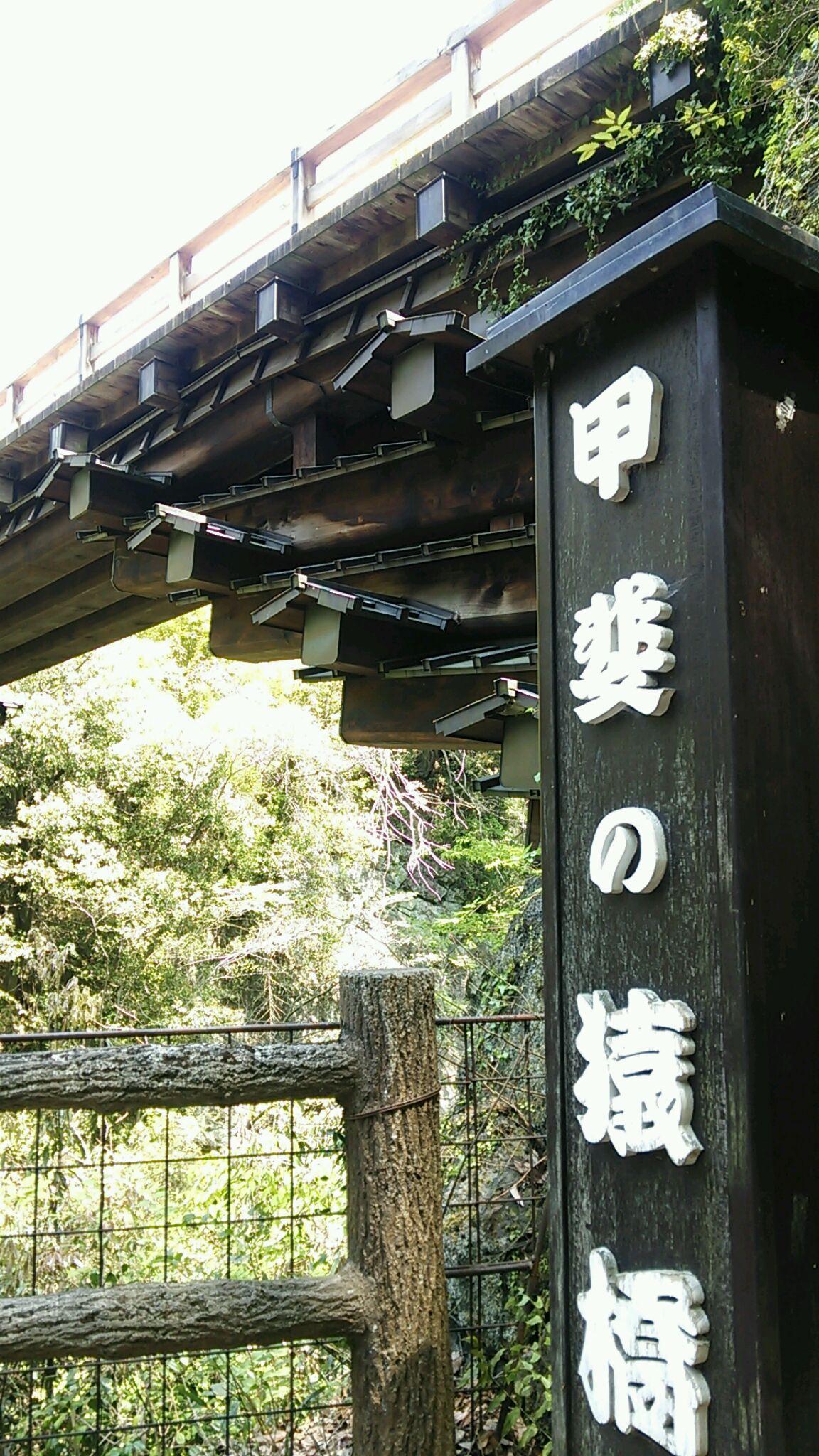 甲州街道 2014.05.02 高速渋滞を避けて 甲州街道で東京方面へ向かう途中 甲州街道一難所と言われた笹子峠に その木はありました 矢立のスギ その昔 旅人を見守ったそのスギは 戦に向かう武士が 一番矢を射たてて 戦勝を祈願したとか・・ 樹齢千年を超えても 悠然とした姿に癒されます こちらは 広重の絵にもある猿橋 橋脚を使わずに両岸から張り出したはね木に 橋が支えられていました 横木は雨が当たらないように可愛らしい屋根が・・ 岩国の錦帯橋 木曽の棧に並ぶ 日本の三奇橋のひとつとか 旧甲州街道は新緑の中でした