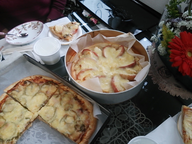 事務所ランチ 2014.12.04 今日は事務所ランチ 美子ちゃんこと、野村社労士の お手製のピザとアップルパイとミルクプリン いつもたくさんのケーキや パンを焼いて届けてくださいます 皆が認めるプロのパン屋さんです 楽しくおいしい お昼のひととき ごちそうさまでした❀❀❀