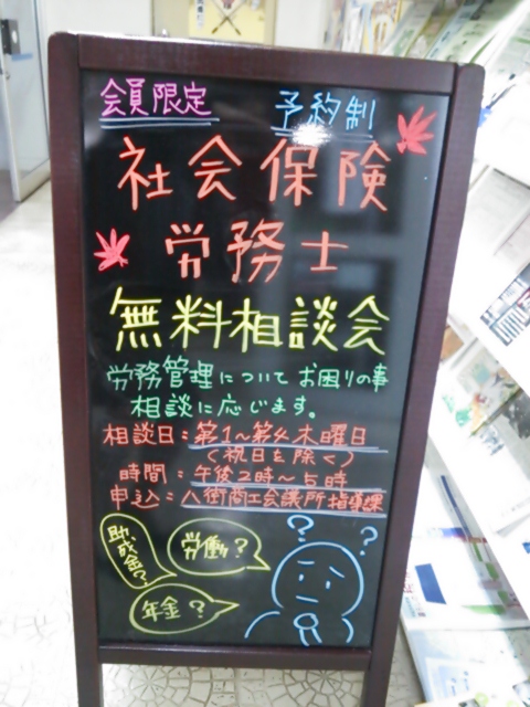 相談会 2014.12.12 毎週木曜日は 八街商工会議所にて会員さま向けの 無料相談会が開催されています 今回は、商工会議所の方がこんなかわいい看板を立ててくださいました 今年もたくさんの方々からのご相談がありました お帰りになるときの笑顔に出会うとき お役に立てたかなってうれしくなります 私にとっても楽しみな木曜です
