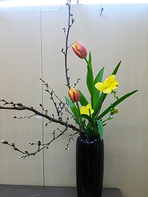 立春 2015.02.04 今日は二十四節気の立春 冬至と春分の真ん中です 「春は名のみ」 の言葉どおり 実際に暖かくなるのはまだ先ですね 桜とフリージア チューリップを挿しました フリージアがやさしく香ります まだ蕾