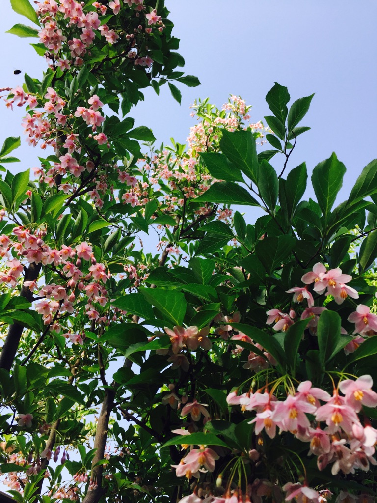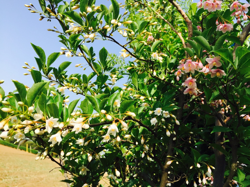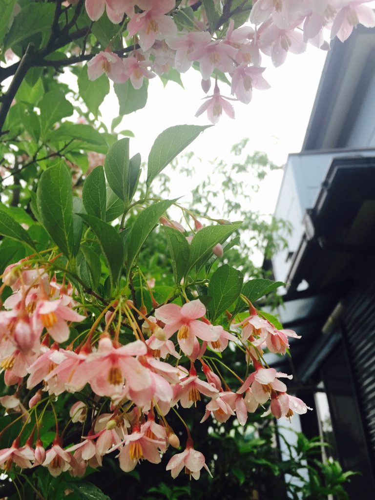ピンクチャイム 2015.05.16 ピンクチャイムが咲きました エゴノキの花が恥ずかしそうに うつむいて咲くのは 花粉を効率よく運んでくれるハチを選び 怠け者で脚力の弱いハナアブやハエが 花にとまれないようにしているからなんですって とても忙しい一週間でしたが やっと土曜日 今日は、社労士会千葉支部の定時総会と 先生のご自宅でお花の補講 明日の小原流の研究会にむけて 少し自信のない私に補講してくださいます 感謝ですね