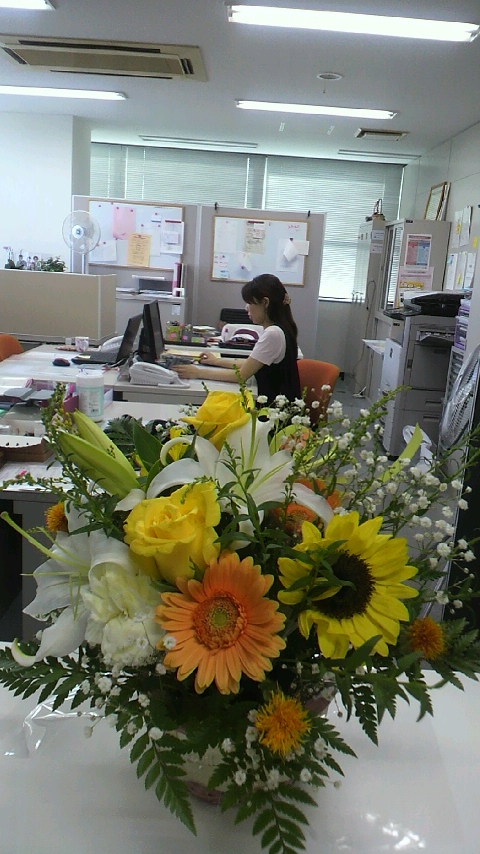 明るくなりました 2012.06.27 うざわさま 素敵なお花をありがとうございました。 うっとおしいお天気でも事務所が一気に明るくなりました。 本日は定期健康診断の結果も届きました。 やっぱり気になるのは体重ですね。 適度な運動と規則正しい食生活、毎日の課題です。。