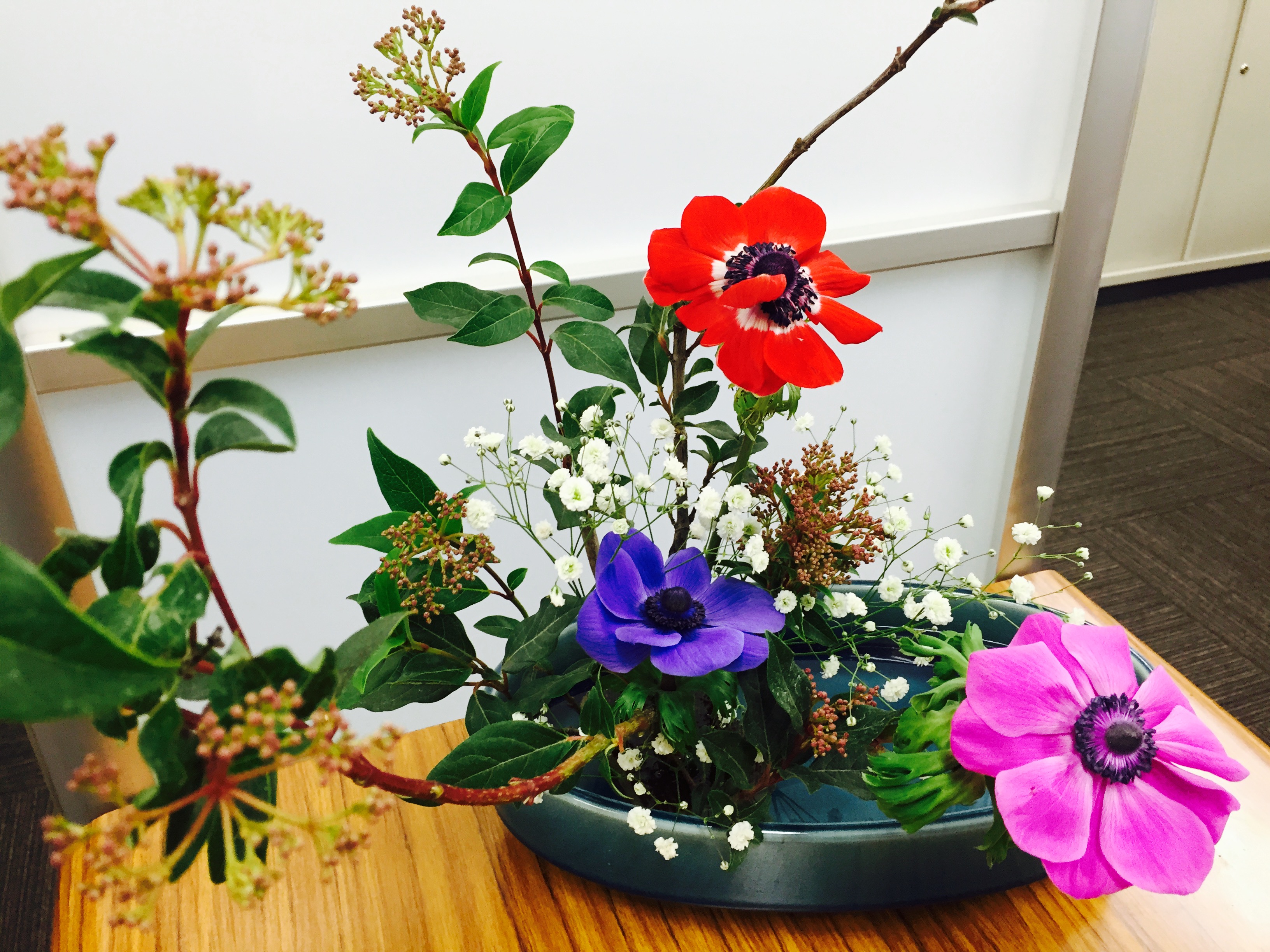 アネモネ 2017.01.25 お稽古花は元気なアネモネ 気持ちを元気にしてくれるアネモネ 語源はギリシャ語で「風」 「春一番」 「花散らし」 春は風が強くなりますね 開花時期はこれから 寒の真っただ中 本格的なアネモネの季節が待ち遠しいです