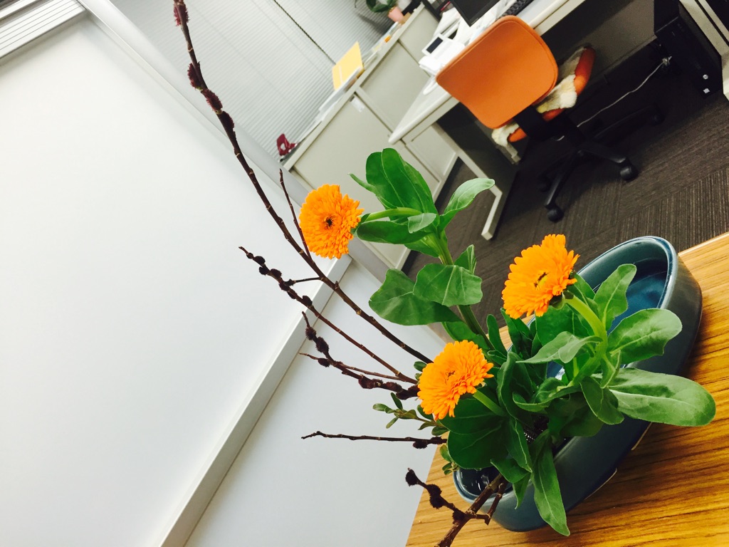 きんせんか 2017.02.08 春はそこまで来ているのに2月って寒さ厳しいですね 橙黄色の花色って脳を刺激して徐々にからだを温めててくれるそうです そしてきんせんかの色って食欲を増進させる作用があるんですって カゼやインフルエンザに負けないように 花の力で体力つけて温かくしましょ! 小原流 私の今月の研究会花材は 金盞花と黒芽柳 楽しく活けられますように。。