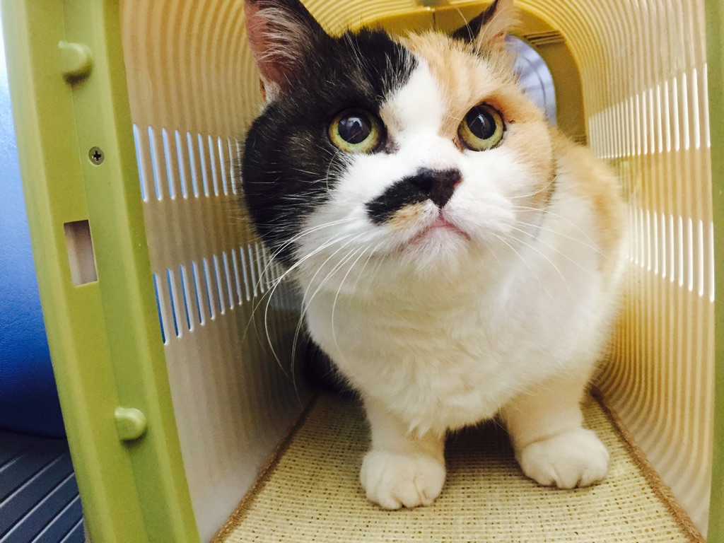 お出かけ 2017.02.13 とめさん 1年ぶりのお出かけです 踏み切りの向こうの病院まで 軽い膀胱炎なんだそうです 冬になると寒くて 水分取らなくて なりやすいんだそうです。。 超高齢ネコ扱いの獣医さんに 少し不満顔 高齢ネコ扱いしないでね まして超高齢なんて・・ まだ二十歳にゃんよ