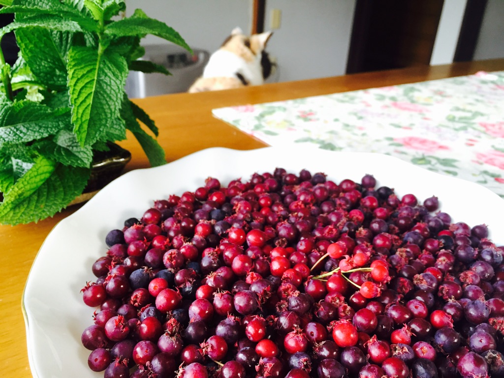 初夏 2017.06.11 今年もジューンベリーの実がたくさん実りました ブルーベリーより栄養価高く さわやかな味わい 初夏の味 心の中にも栄養が広がります 毎朝見に来る 小鳥さんにもおまけ 少し残しました