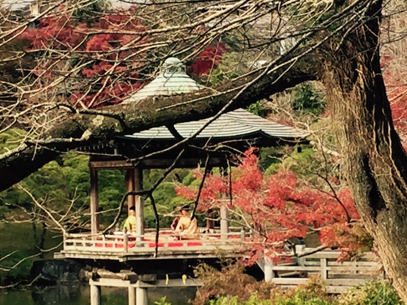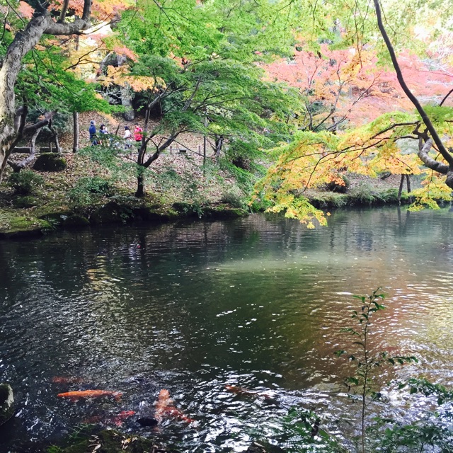 水辺の紅葉の美しさに